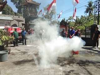 Pengulon - Selasa, 27 Agustus 2019, Pukul : 09:00 Wita, Bertempat di Kantor Perbekel Pengulon bersama dengan Dinas Pemadam Kebakaran ( Damkar ) Kabupaten Buleleng melakukan Sosialisasi dan Simulasi Cara Menanggulangi Kebakaran.   Simulasi pemadam kebakaran ini diikuti oleh Bapak Plh. Perbekel Pengulon ( Nyoman Darmada ) dan Staf Pemerintah Desa Pengulon, Ketua BPD dan Anggota, Kelian Desa Pakraman dan Anggota, Ketua LPM dan Anggota, Ketua TP PKK Pengulon dan Anggota, Kelian Subak Pengulon dan Subak Merta Sari Pengulon, Ketua Karang Taruna dan Anggota, dan Tokoh Masyarakat. Tepat pukul 09.30 Wib Acara Sosialisasi dan Simulasi Kebakaran di buka dengan pemberian sambutan oleh Bapak Plh. Perbekel Pengulon  didampingi oleh  Ketua BPD Desa Pengulon dan Staf. Plh. Perbekel Pengulon mengatakan simulasi antisipasi bencana kebakaran bertujuan sebagai kesiapan  untuk mengantisipasi terjadinya bencana dan kebakaran yang sewaktu – waktu bisa terjadi. Acara dimulai dengan Pembekalan materi oleh Damkar Kab. Buleleng ( Bapak Pasek ) tentang Kebakaran  antara lain : 1. Mengidentifikasi sumber-sumber kebakaran, tanggap darurat dan penanganannya. 2. Melaksanakan pemadaman kebakaran dengan menggunakan prinsip pemadaman api. 3. Mengidentifikasi alat pemadam berdasarkan sumber kebakaran. 4. Mampu menggunakan alat-alat pemadam kebakaran khususnya Alat Pemadam Api.
