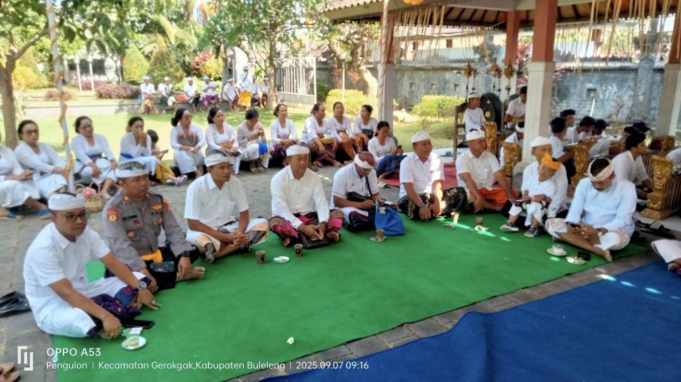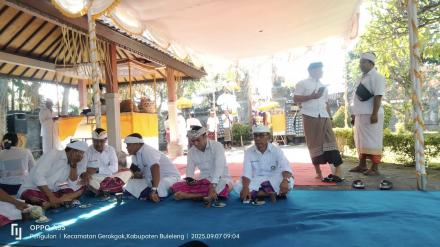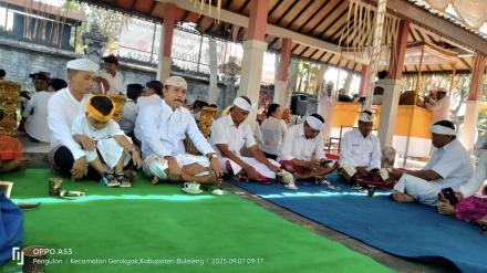 Gerokgak, 07 September 2025 – Bertepatan dengan Rahina Purnama Sasi Ketiga Sekretaris Desa menghadiri Acara Pujawali di Padmasana Kantor Camat Gerokgak.