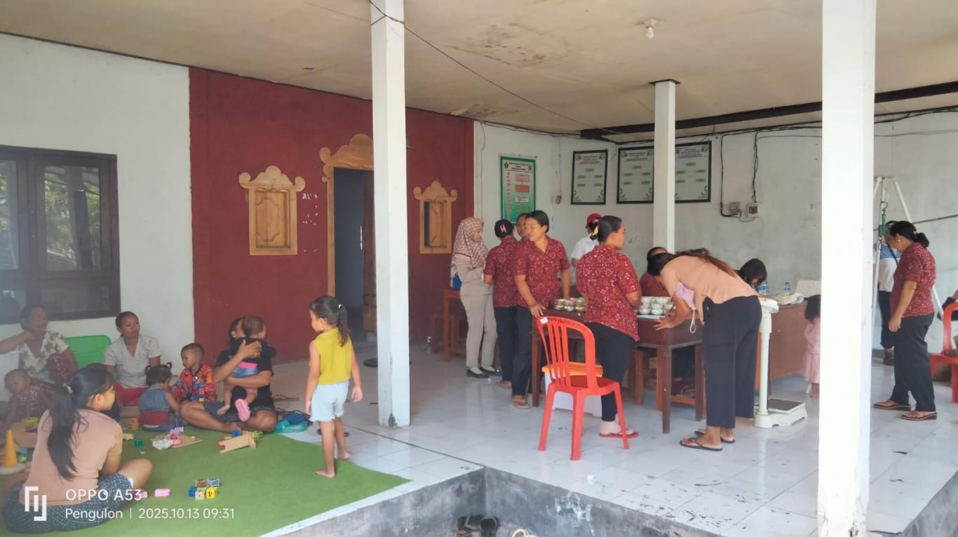 Pengulon - 13 Oktober 2025 Pada pukul. 09.00 Wita Perbekel Pengulon Pemdes Pengulon secara langsung memonitoring Kegiatan Posyandu yang bertempat di Balai Dusun Bukit Sari pelayanan posyandu di bantu oleh Petugas dari Puskesmas Gerokgak 1. Jumlah Balita yang hadir 50 Balita. Kegitan posandu rutin di laksanakan setiap bulan.