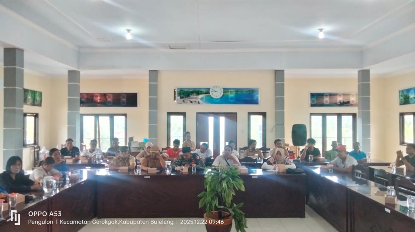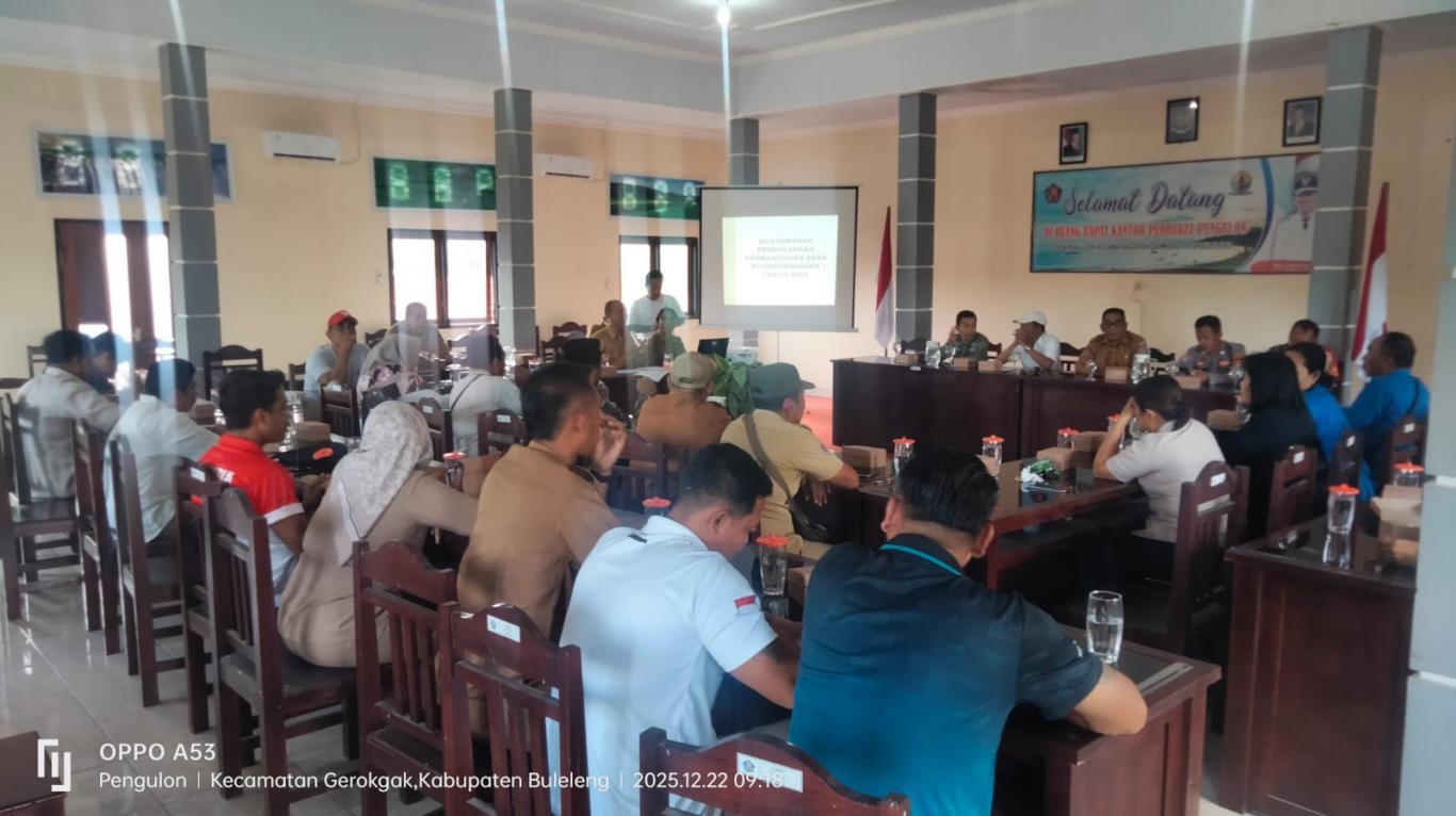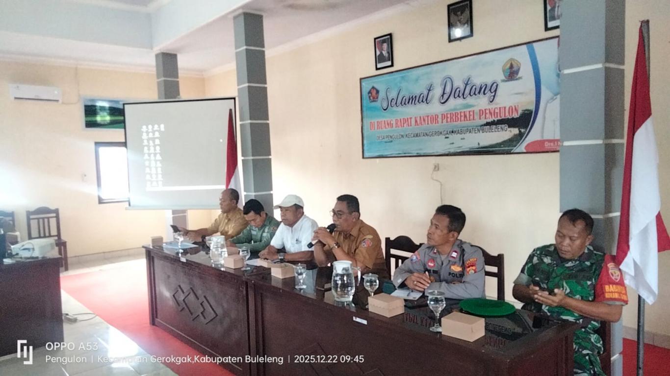 Pengulon – 22 Desember 2022 Dalam Rangka Pengamanan Natal Tahun 2025 dan Tahun Baru 2026 Pemerintah Desa Pengulon melaksanakan Rapat Koordinas Pengamanan Hari Raya Natal Tahun 2025 dan Tahun Baru 2026. Rapat yang di bukak oleh Sekretaris Desa yang bertempat di Ruang Rapat Kantor Perbekel Pengulon. Rapat yang membahas tentang pengamanan Nataru Tahun 2026 Khususnya di Desa Pengulon.