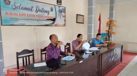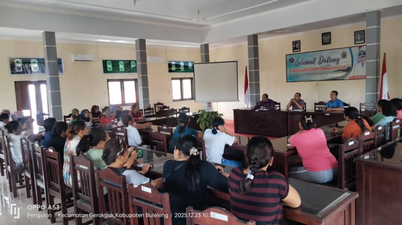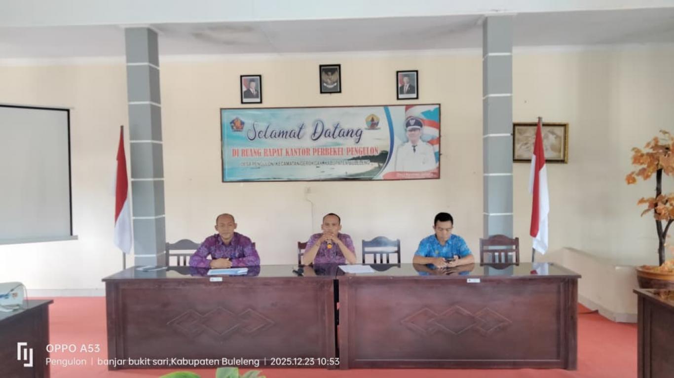 Pengulon 23 Desember 2025 Bertempat di Ruang Rapat Kantor Perbekel Pengulon Pemerintah Desa Pengulon melaksanakan rapat koordinasi kader posyandu dan pembangian honor kader. Kegiatan ini yang secara langsung di pimpin oleh kasi kesejahteraan dan di dampingi sekdes dan pendamping desa. Honor berasal dari Dana Desa Tahun Anggaran 2025.