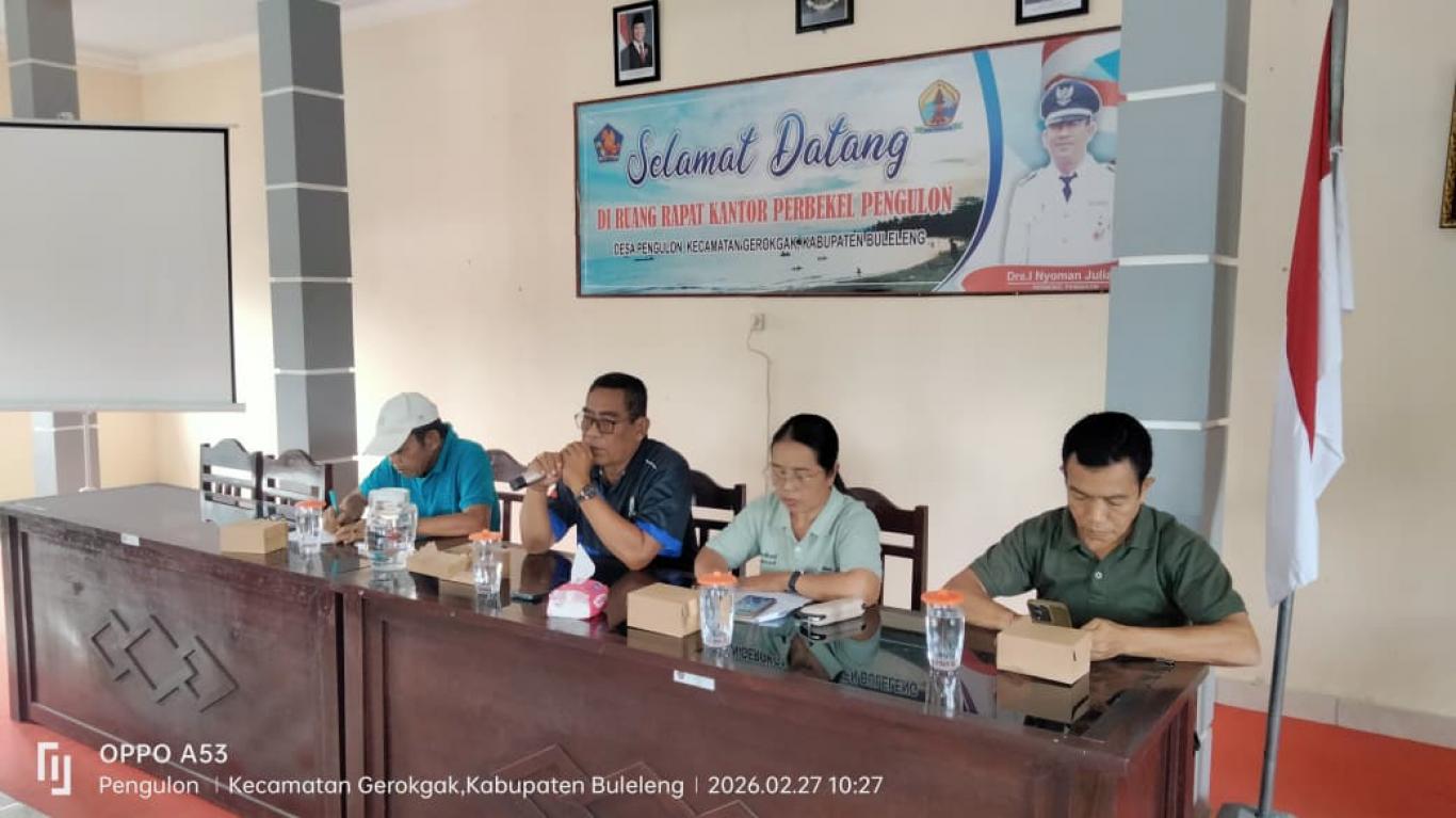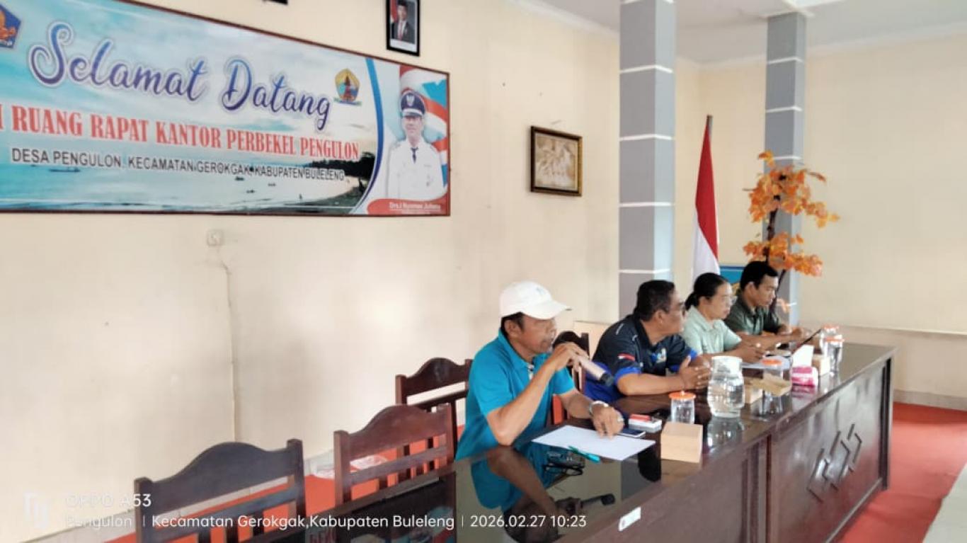 Pengulon – 27 Februari 2026 Dalam hal ini Badan Permusyawaratan Desa ( BPD ) melaksanakan Musdes Evaluasi, Verifikasi dan Penyepakatan BLT-DD Tahun Anggaran 2026. Kegiatan ini di mulai pada pukul 09.00 Wita bertempat di Ruang Rapat Kantor Perbekel Pengulon. Musdes secara langsung di bukak oleh Anggota BPD yang di hadiri oleh Bapak Camat Gerokgak yang di wakili oleh Luh Manik Kasi Sosoal dan Budaya Kecamatan Gerokgak, Pendamping Desa, Bapak Perbekel Pengulon bersama Perangkat Desa, Ketua Karang Taruna, Ketua LPM bersama Anggota, Ketua TP-PKK, Tokoh Masyarakat, Perwakilan Masyarakat Miskin, Babinsa dan Bhabinkamtibmas.
