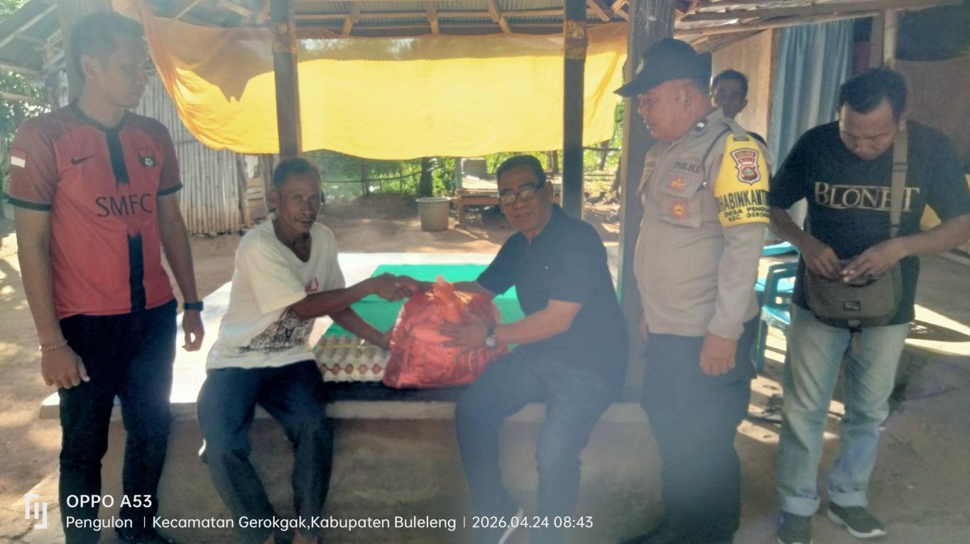 Pengulon - 24 April 2026 Perbekel Pengulon bersama Perangkat Desa, Ketua Bumdes, Babinsa Pengulon menyerahkan 2 Paket Sembako Kepada Masyarakat Yang Sakit Kronis An. Luh Warki dan Sakit Tumor Kaki An. I Made Juli Arnaya bertempat di Banjar Dinas Bukit Sari. Bantuan Sembako Tersebut bersumber dari Dana Desa. Dan di lanjutkan dengan Monitoring Sapi yang di kelola oleh Bumdes Jagatditha Pengulon.